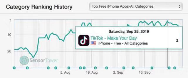 此外,考虑到国外的网民社交生态更加开放与多元化,而短视频又作为一种全球通用的社交语言,具备病毒式流行的扩展属性,它波及用户范围更广,用户接受度更高,它对国外社交关系的培育与迁移也或有一定的影响。从数据来看,TikTok 目前已覆盖 150 个国家和地区,涵盖75 种语言,短短一年时间内全球月活跃用户已超过 7 亿。国际应用市场研究机构Sensor Tower数据显示,今年9月,TikTok更是多次占据美国苹果应用商店的前三强。