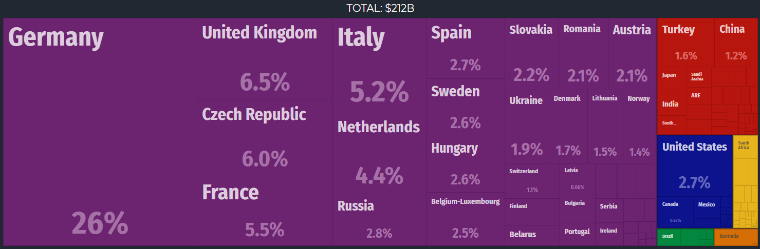 自从乌克兰和克里米亚危机爆发以来,西方国家就对俄罗斯开启了历时近五年的经济制裁。作为俄罗斯的世仇,波兰不仅大力支持制裁,还选择大量进口昂贵的美国液化天然气以摆脱对俄罗斯天然气的依赖。相比之下,德国却是对俄制裁的最大输家,根据《德国商报》的一份调查显示,德国工业部门每天都因制裁而损失7亿欧元的出口额。