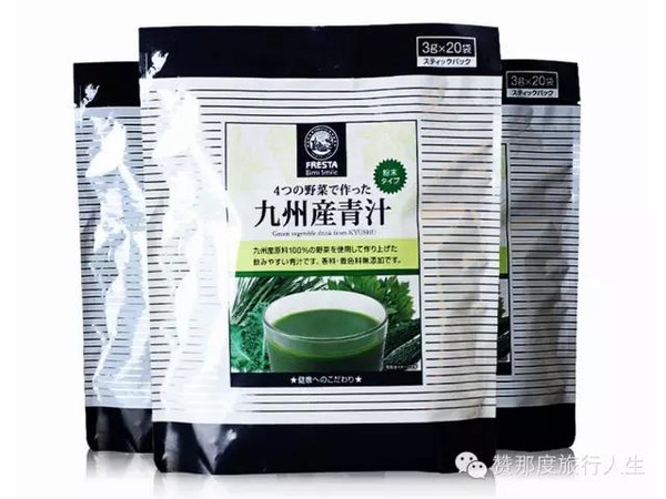 来自日本著名连锁超市Fresta的九州产青汁由4种蔬菜制成:大麦若叶,苦瓜,明日叶(维生素含量高),羽衣甘蓝。比青汁营养更丰富!