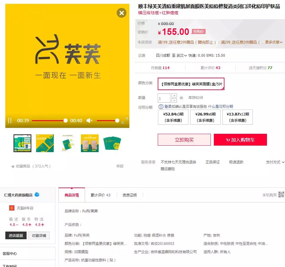 还有,该产品名称为“抗菌功能性敷料(贴)”,但化妆品研发资深工程师表示:“妆字号面膜不能宣称抗菌功能,而抗菌是属于杀菌消毒类的产品,不属于化妆品。并且,敷料、敷贴一般多用于械字号面膜。”