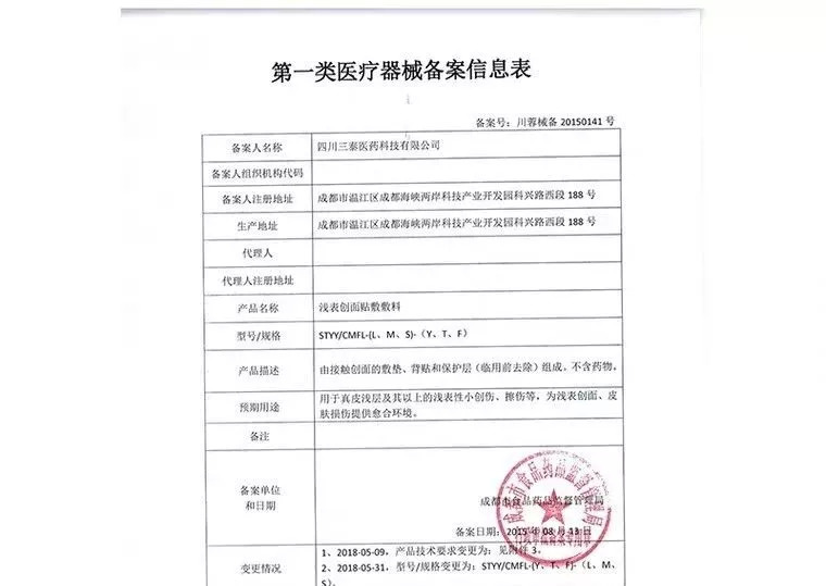 ▍活玉浅表创面贴敷料备案信息表,截自活玉天猫旗舰店