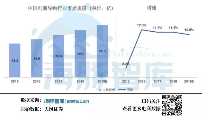根据天风证券的行业研究报告,国内电商导购行业的规模近些年来一直呈现扩大趋势。对于新增用户增速已经出现负值的阿里来说,获取更多的流量是目前亟待解决的一个问题。