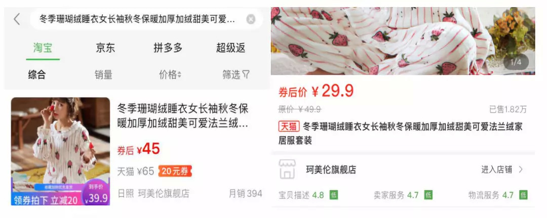 笔者搜索了同一种淘宝商品在返利网和花生日记的价格,发现花生日记的价格更加优惠,同时,销量也呈现出惊人的差距。