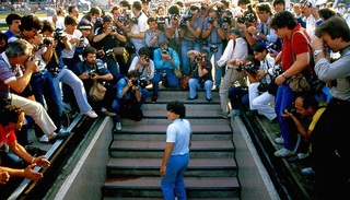 阿斯弗·卡帕迪尔执导的HBO新纪录片《马拉多纳》一如既往地以戳破神话泡沫为目标。无论是在球场上还是球场下,马拉多纳滑稽荒唐的行径都告诉我们,他亦是凡人,仅此而已。从1980年代的精彩特写镜头中,我们可以看到,在赛场上和这个身材矮小、略显滑稽的家伙在一起是什么感觉,他浓密的黑发上缠结着汗渍,胸膛像鸽子一样高高鼓起。然而矛盾的是,这些充满人情味的接触只会强化马拉多纳神话真正的两面性——他既是神又是人,既是救世主又是罪人。在卡帕迪尔的镜头下,马拉多纳神圣得恰如其分,因为他本身即是人。他所处的时代已经过去了,那时的运动明星还是血肉之躯,而不是利润丰厚的职业足球行业中的一颗螺丝钉;那时的运动明星仍很天真——如果这么说不显得幼稚的话。