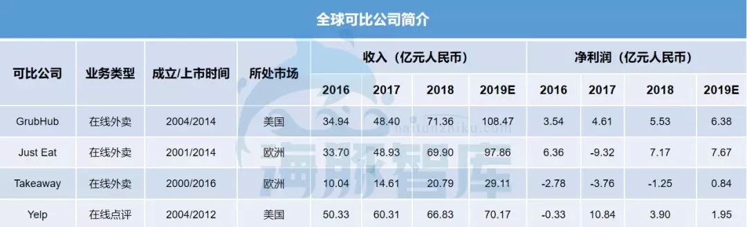 因为饿了么已和口碑合并,公开的财务数据不够支持对比,且饿了么与美团外卖市场份额差距大,用户重合度高,不适合作为比较对象,所以选取国外上市外卖企业为参考对象,以验证观点。