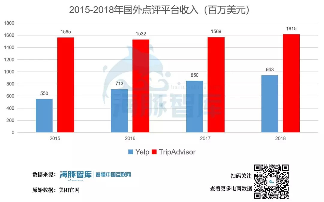 同外卖业务,到店、旅游业务仍然选取国内外可比企业。Yelp作为美国最大的点评网站,TripAdvisor作为全球领先的点评网站,更适合作为参考对象。