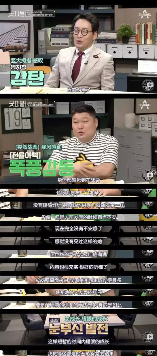 到有理有据、自信大方,让人眼前一亮的发表,也只用了短短2周的时间。连演播室的嘉宾都对她啧啧称赞。