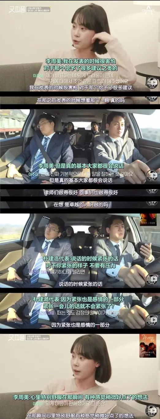 朴建浩代表告诉周美,紧张是情绪的一部分,紧张一会儿就不会紧张了。