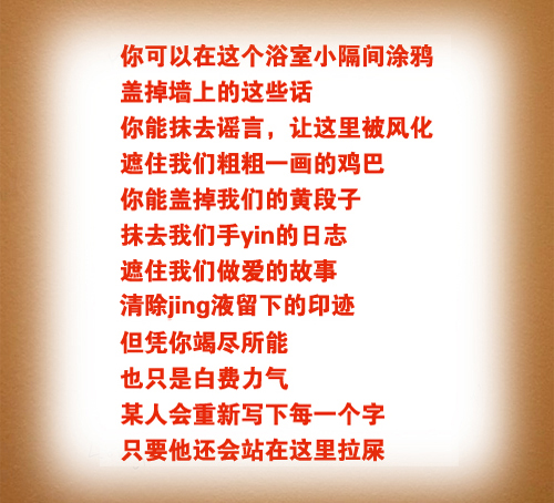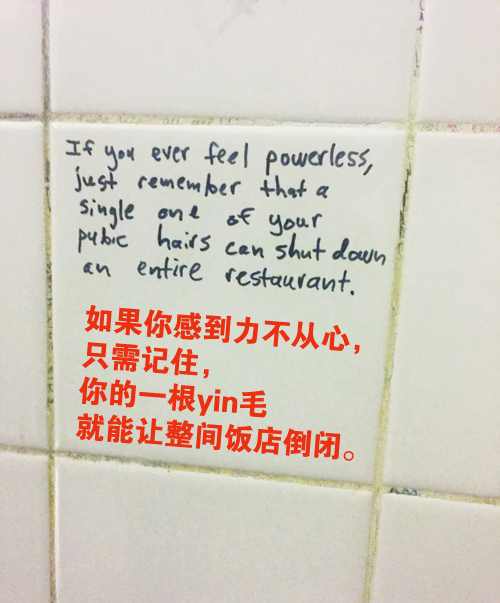 【1】“厕所涂鸦”可三俗地励志:你的一根毛发能干翻一整间饭店,