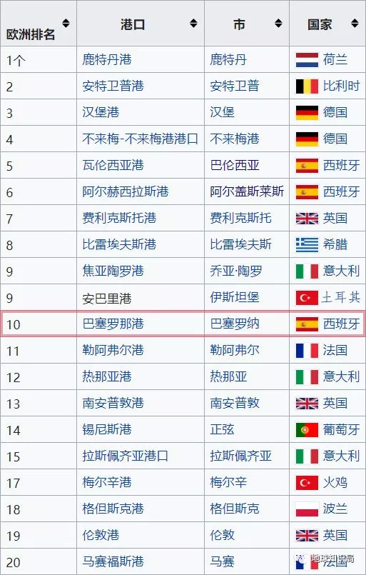 欧洲集装箱港2017年排名,巴塞罗那居第十