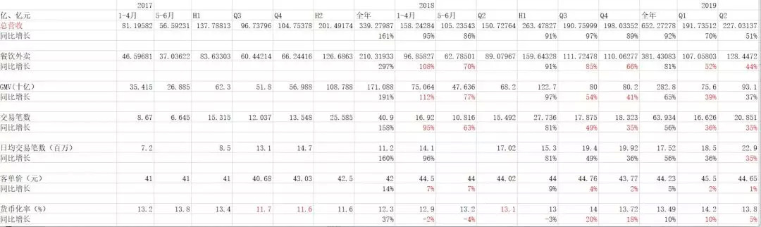 2019年餐饮商户继续挑收入大梁的,担子有加重的趋势。美团2019年Q1外卖餐饮营收107.1亿元,同比增长达52%;2019年Q2餐饮外卖实现收入为128.4亿元,同比增长44%。考虑到Q2季度全国天气最适合外卖配送,属于业务高峰期,餐饮GMV(总收入流水Q2为756亿)同比增长达39%,这意味着,美团餐饮佣金增长幅度超过GMV的增幅,平台对商户的抽佣比例在提升,对于商户而言如果菜品价格不变那么利润空间就像被拧毛巾一样的压缩。