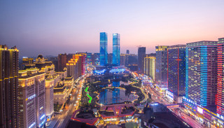 在这个巨大体量的旧改项目的中心位置,竖起了中国目前最高的双子塔——花果园双子塔,又称为贵州国际贸易中心(ITC),高度达335米,而这只是宏立城商业的一部分。