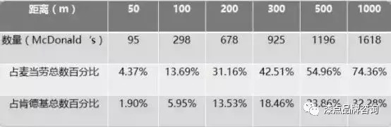 肯德基与麦当劳相邻数量统计。图源:品牌咨询那些事儿