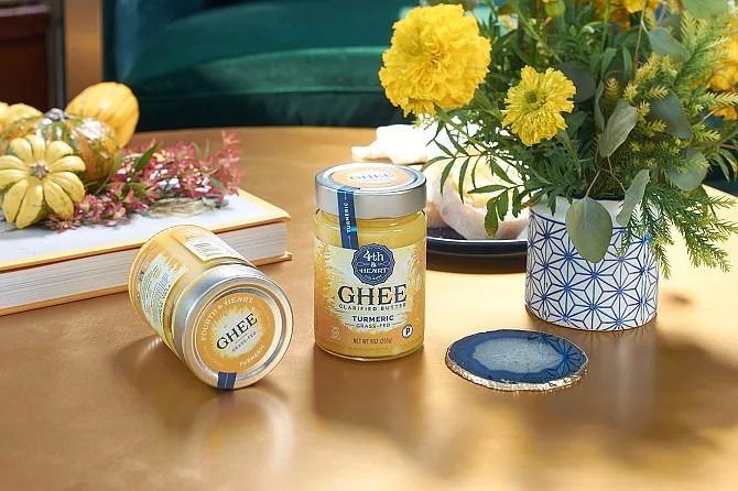 4th & Heart是一家主打印度酥油的品牌,2015年成立于美国加州。4th & Heart对古老的印度阿育吠陀主食和印度酥油(Ghee,在西方被称为“澄清黄油”)进行了创新改良,将草饲奶牛出产的牛奶制成黄油,再经简单烹饪和过滤制成酥油,不添加额外成分,不含乳糖,更加健康,可以部分代替日常用的黄油和食用油。