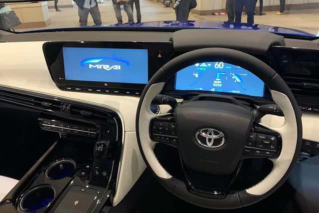 7. 【丰田Mirai Concept】内饰多采用黑色/白色双色皮质包裹,并提升了新车内饰的豪华氛围感,据悉未来新车量产后还将提供纯黑色内饰可供选择。配置上则有采用8英寸数字组合仪表+12.3英寸多媒体系统,以及流媒体后视镜和14扬声器的JBL音响系统来突显科技感。 新车在第一代Mirai的基础上续航里程将增加30%,新车续航里程或将达到644km。