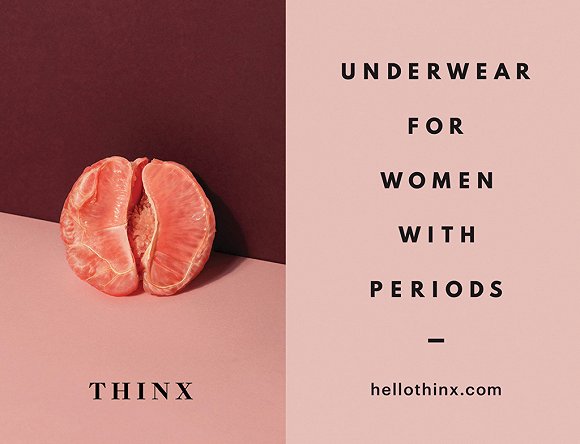 它甚至在纽约地铁上用半颗西柚、流淌的蛋黄的大幅广告,来表示女性来生理期时的情境。在最初申请在纽约地铁投放广告时,审核部门提出了一些疑虑。此后Thinx便在社交媒体上呼吁:“亲爱的地铁,这里会有血。(DEAR NY SUBWAY, THERE WILL BE BLOOD.)”之后一些媒体上就出现了一些非常有煽动性的舆论:纽约地铁会禁止这些谈论月经的广告吗?最终,Thinx的大幅广告如愿登上了纽约地铁,也是一场关于女性权利及品牌形象的宣传。