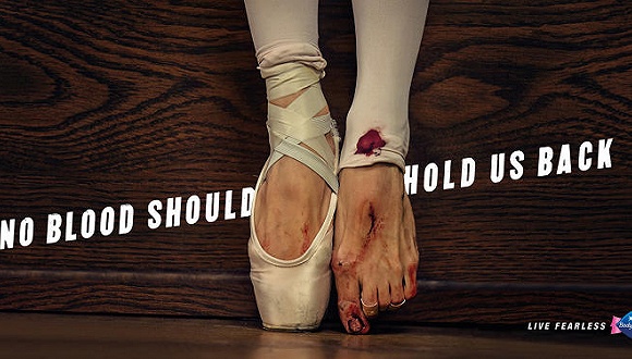现在,女性卫生品牌表现出的“反叛”,很大程度上来自于女性地位的演变。通过价值观讨论来制造话题,也涌现出了不少好玩的创意,比如英国卫生巾品牌Bodyform的广告展现了一群有“血性”的女性——芭蕾舞者伤痕累累的脚、女拳击运动员带伤的脸、在激烈对抗中坚持比赛的女橄榄球手,以及腿流血受伤的女长跑运动员等等。