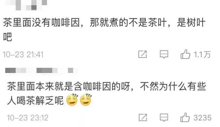 不过,大部分网友还是很理智的,在微博上留言:茶里面没有咖啡因的话,那煮的不是茶叶,是树叶吧。
