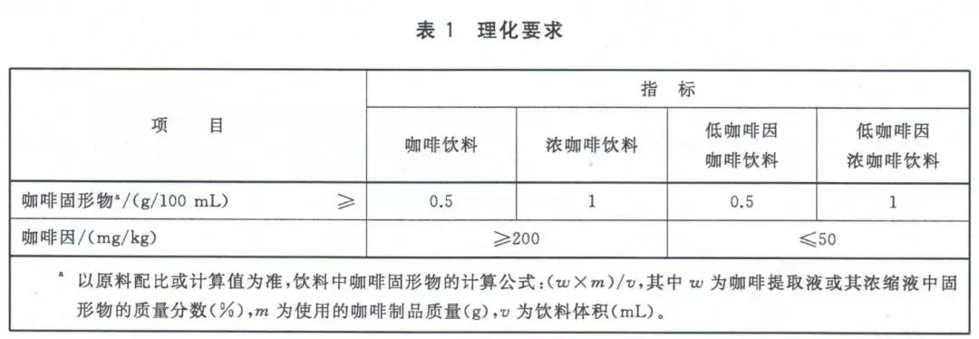 图片截自《GB/T 30767-2014 咖啡类饮料》