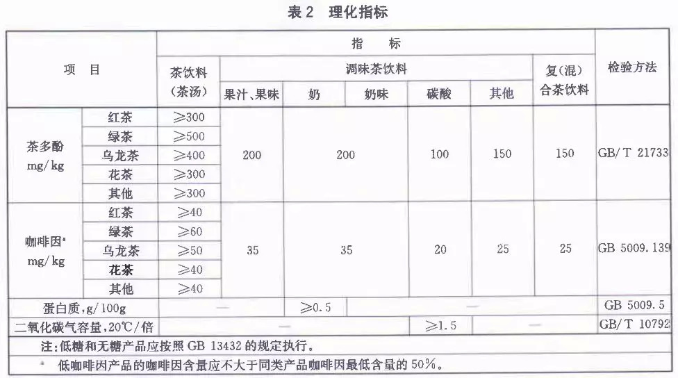 图片截自《NY/T1713-2018绿色食品茶饮料》