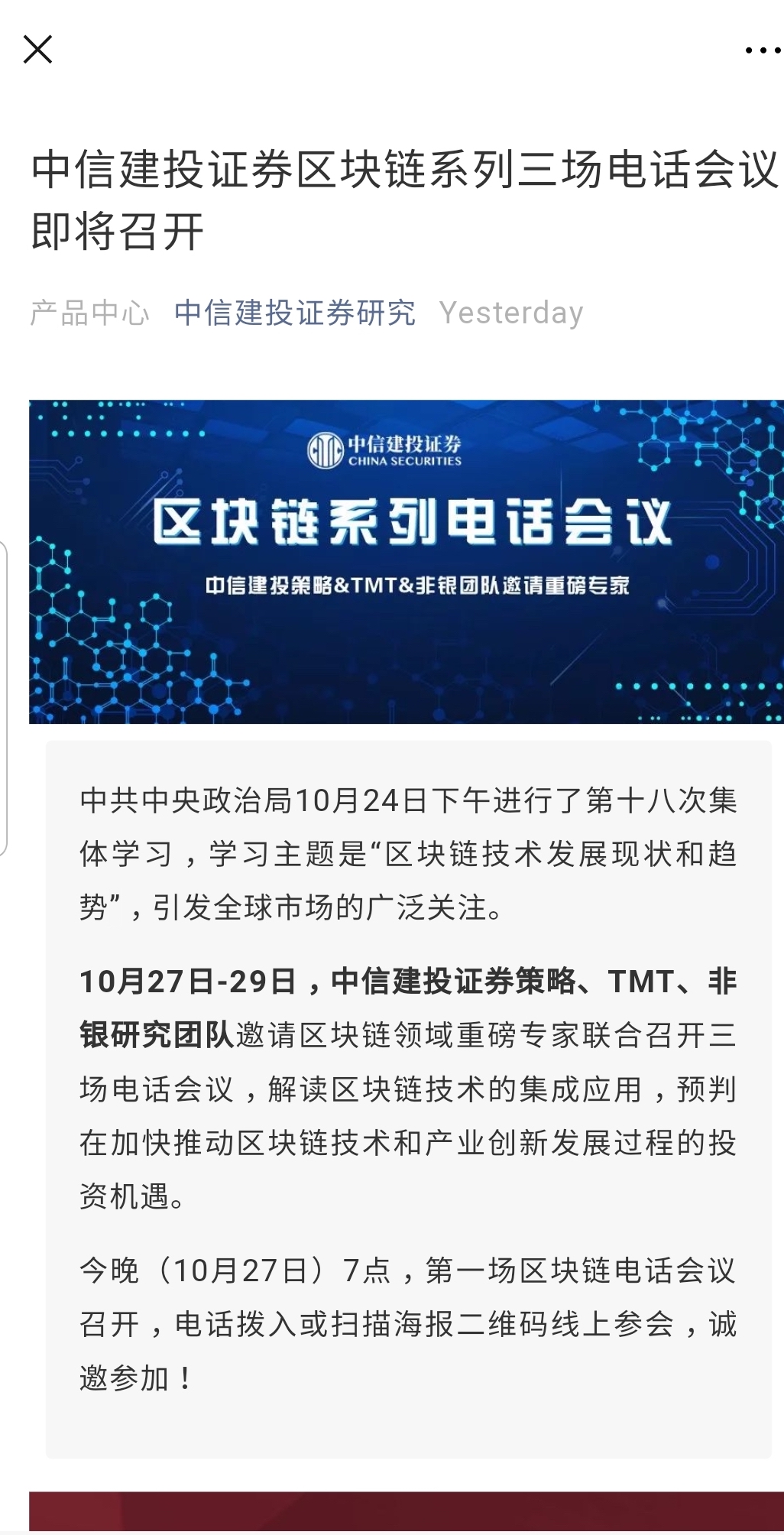 恒大首席经济学家任泽平一连发布了三篇关于区块链、Libra、比特币的报告,中信建投则将于10月27日至29日召开三场电话会议……其余券商不甘落后,各类报告也是纷至沓来。