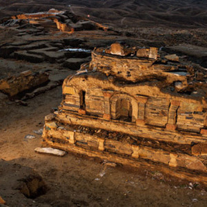 采矿工作的推迟使得考古学家有更充足的时间挖掘文物,尽管他们的帮手人数正在逐渐减少。Mes Aynak拥有的过去与现在他们所处的混乱时代形成鲜明的对比。从公元3世纪到公元8世纪,Mes Aynak在相对和平的环境中成为当时的精神中心。该遗迹周围至少有七个多层佛寺,每个佛寺周围都有岗楼和高墙等防御设施。考古学家们在其中发现了100多个片岩和粘土佛塔,以及用于祭拜的遗骨匣。