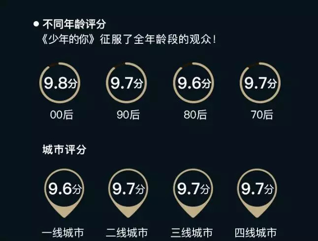 同时,这部电影以高质量的品质征服了不同年龄层,不同地域的观众,00后、90后、80后和70后对于《少年的你》的评价以及一线、二线、三线、四线城市的评价,相差都不大。