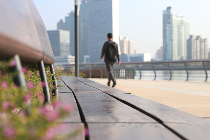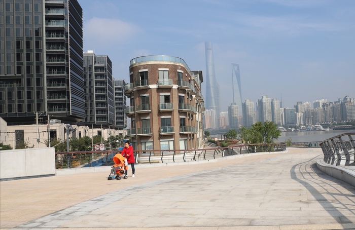 7. 同时,黄浦滨江在岸线上设置了高地错落的休息平台,配以高大的树木遮阳,即使在炎热的夏季也能让市民和游客享受黄浦江畔的美景。