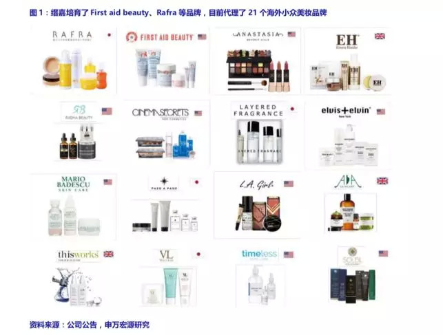 而最引人注意的则是去年年底欲重金8.08亿元收购海外化妆品运营代理公司上海缙嘉51%的股权。从相关资料显示,上海缙嘉是专注于引进海外优质化妆品品牌的运营商及电商综合服务商,创始人深耕美妆行业十年,深度合作优质海外小众品牌,获中国市场代理权,成功培育包括First aid beauty、Rafra等品牌,目前旗下已有 21个海外品牌。