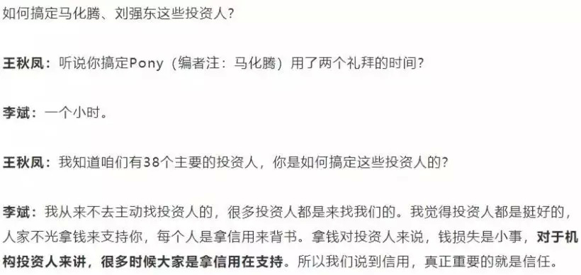 在18年一次演讲时,李斌说“对于我们这个创业来说,钱是非常重要的,真的不能死在钱上”。