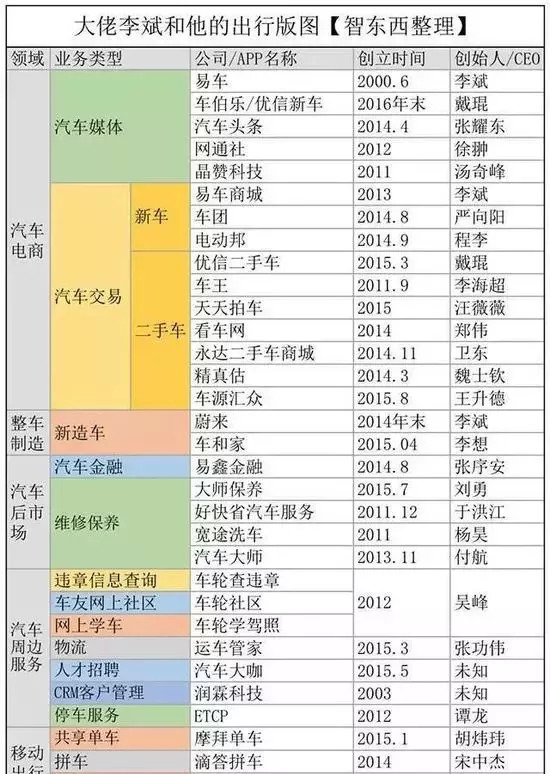 从易车淘到的第一桶金到现在,李斌的投资已经遍布与车相关的领域和行业,其中就有摩拜、优信拍(现优信二手车的B2B业务)、车和家、首汽约车、嘀嗒拼车等独角兽。