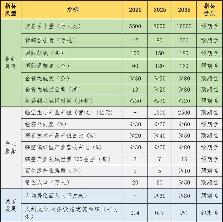 产业聚集层面。临空产业2035年的目标产值是2500亿,经济外向度从目前的不到30%提升到60%左右,预期常住人口也将达到50万人左右。