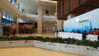 今年的进博会新闻中心设在国家会展中心(上海)A0办公楼,总面积约13500平方米。新闻中心分别设有咨询服务区、媒体公共工作区、媒体专用工作区、广播电视技术服务区、采访室、新闻发布厅、媒体餐饮休闲服务区等多个功能区域。