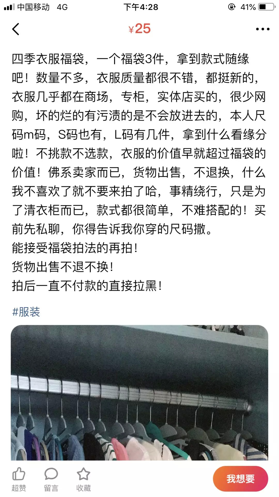 此外,闲鱼上还演化出了一些新的出售方式,例如“福袋”,是指将多件商品装入布袋或纸盒中搭配销售,比如衣服福袋、饰品福袋以及娃娃福袋等,卖家公布物品件数和价格,随机发送,这种搭配销售使得卖家能够快速出手闲置,买家也有一种“占便宜”的感觉。