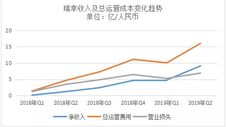 而此后的2019年Q2,瑞幸的新增用户获客成本又再次回升至48.1元,整体收入的增长再次无法跟上总运营费用的增长,亏损再次扩大。