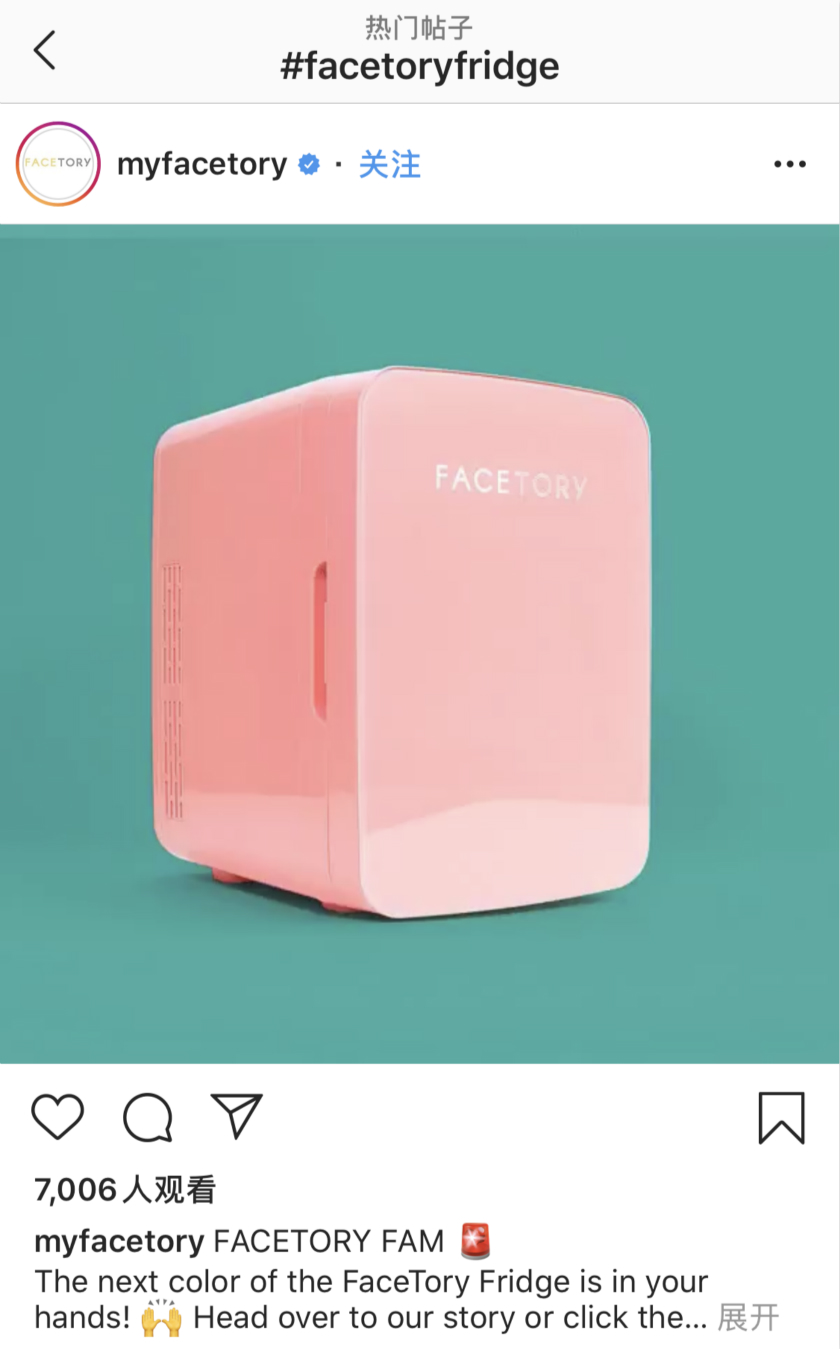 韩国美妆品牌FaceTory销售分上下两层的美妆冰箱。这些产品的主要营销渠道是Instagram。公司营销主管Janice Chang认为,对于美妆冰箱来说,具有能在社交网络上传播的能力是其吸引消费者的重要原因。