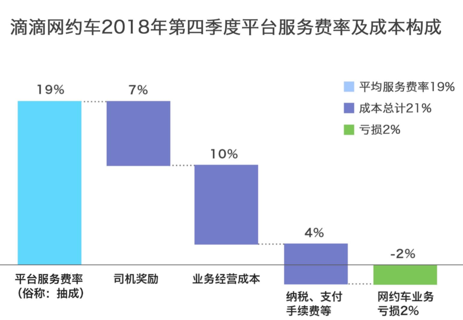 事实上公开报道也印证了这个问题——滴滴在2017年亏损25亿,在2018年亏损则高达109亿元,这其中就包括了113亿的补贴。在滴滴公布的成本年结构中,平均每单平均抽成19%,7%就已经被司机端的奖励(补贴)吃掉了,你或许会问滴滴这么大的市场了为什么还要补贴司机呢?但你要知道每个司机都不愿意在交通高峰和人流密集期拉活,不但不赚钱还影响心情,所以市场化的公司必须通过公司补贴以及用户加价来平衡运力,从经济学角度来看,这项成本很难减掉。