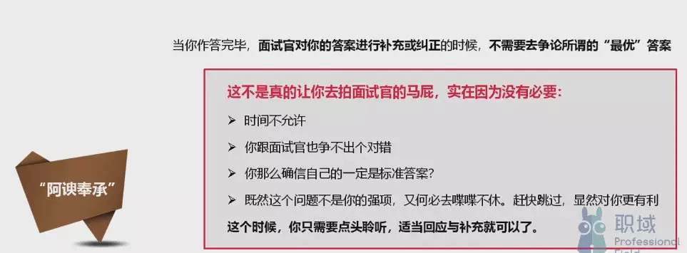面试也是如此,要知道面试官提的一些问题,有时“醉翁之意不在酒”,不在意答案,更在意面试者的人品态度、价值观、逻辑思考能力和应变能力等等。