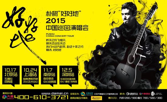 10月17日起,朴树就要开启他的“好好地”全国巡演了,首站定在北京,另已确认的城市包括上海、南京和深圳,这是朴树音乐生涯中迄今最大规模的一次巡演。