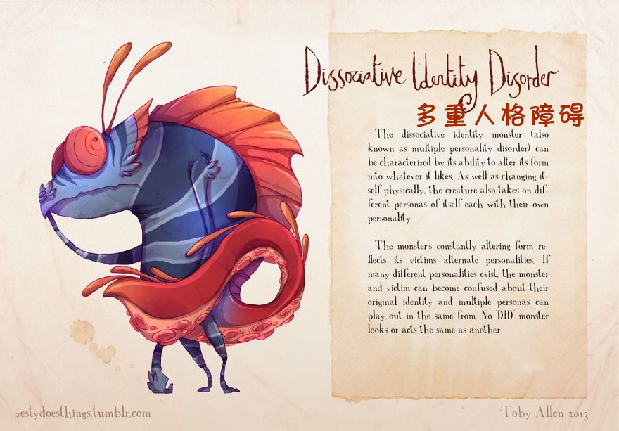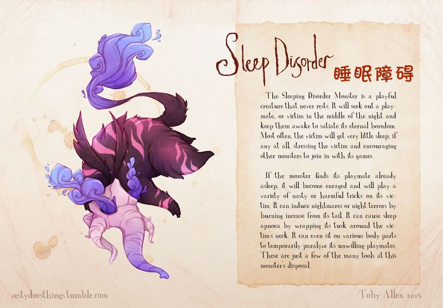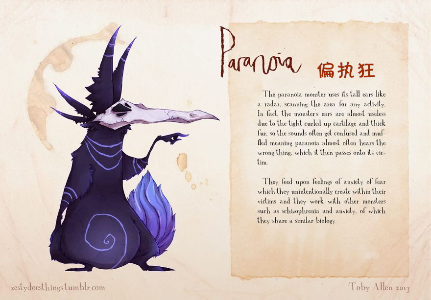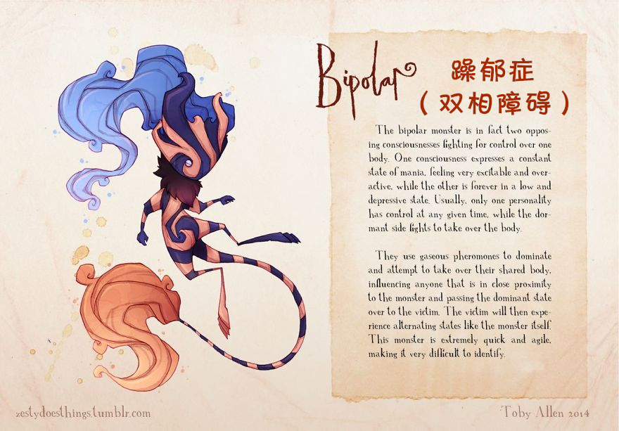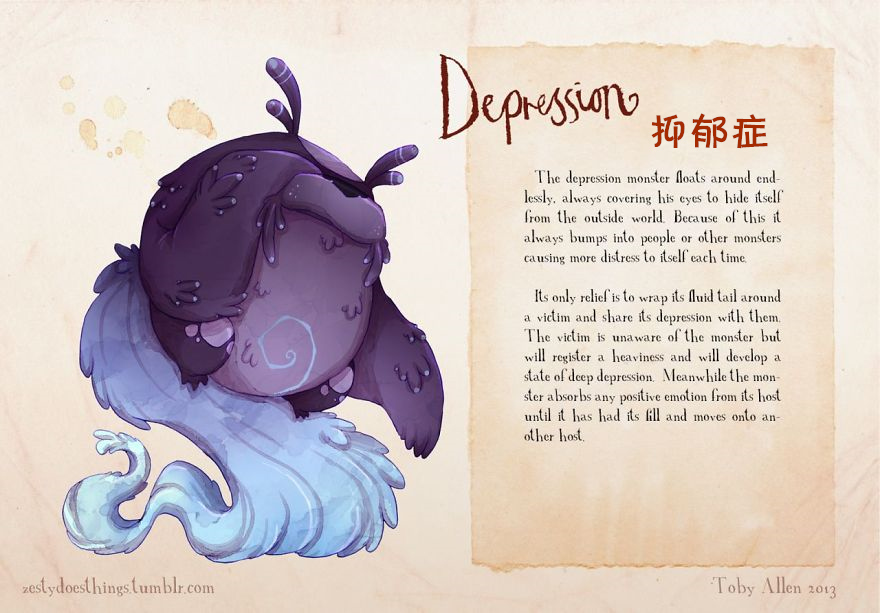 正因为这样,英国艺术家Toby Allen决定把常见的精神疾病画成一只只张牙舞爪的怪兽。