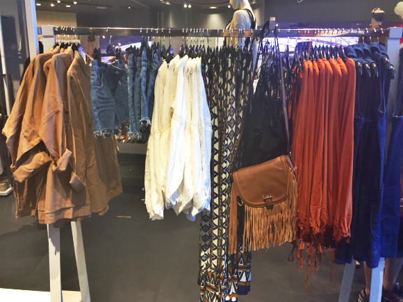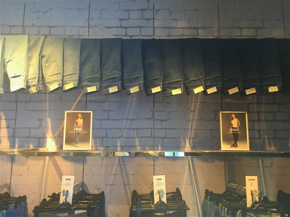 无奈店铺面积有限,款式又不算少,所以货架排列比较拥挤,能够让人深深地体会什么叫做“琳琅满目”,起码你在试风衣的时候是没法走路一阵风的。加上试衣间太少,只有两个,门口等待的闺蜜团已经从到底买不买衣服聊到了如何拓展男性友人之上,每个人等待时间至少半小时,因此也有不少顾客在货架区直接试衣。