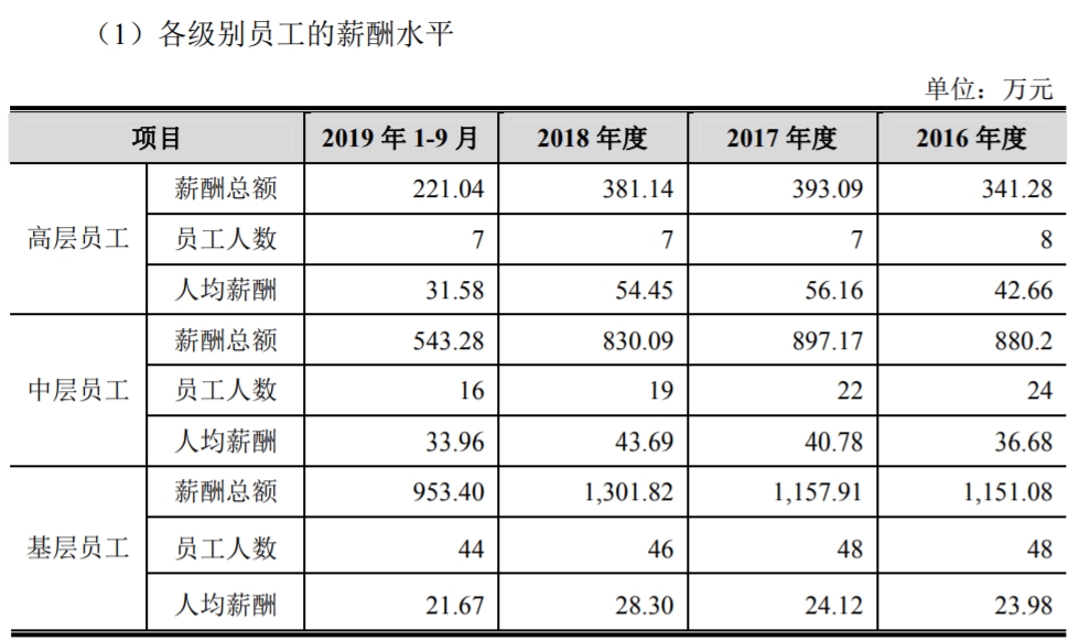 京沪高铁共有7名高层员工,2018年平均薪酬为54.45万元;16名中层员工,去年平均薪酬为43.69万元;44名基层员工,平均薪酬为28.3万元。