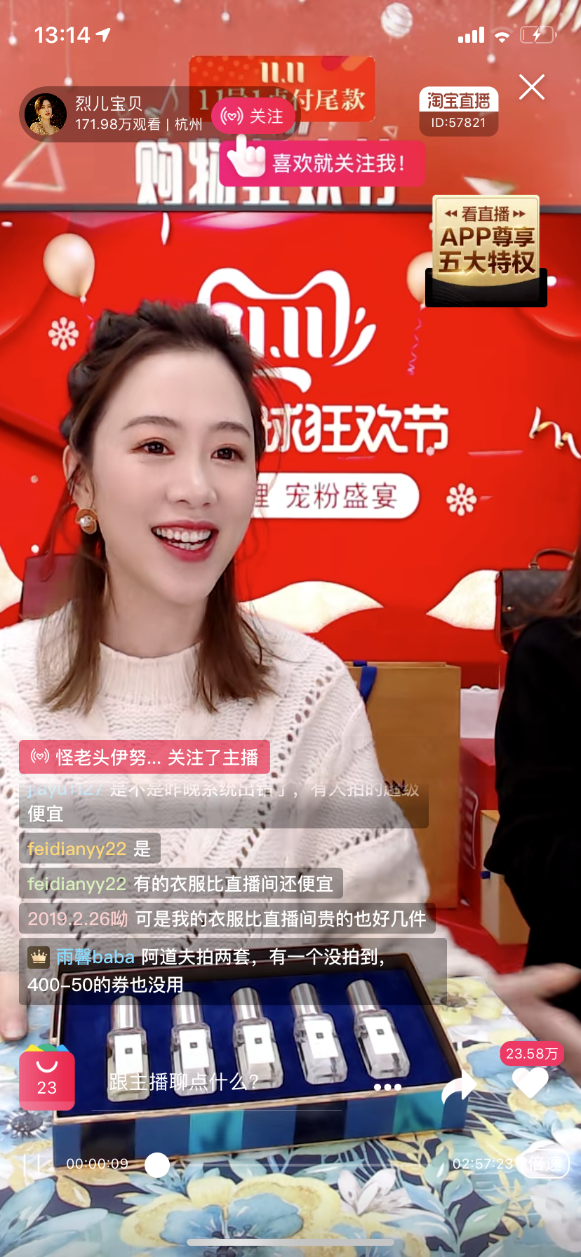 烈儿是有306.9万粉丝的淘宝主播,她感觉到,美妆品牌今年双11期间在直播渠道的投放经费的确有增加,“相比大概80%的美妆品牌都会在直播渠道增加投放经费。”