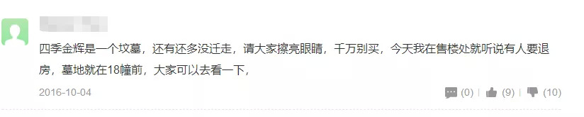 值得一提的是,四季金辉项目处的南部和一片公墓相邻。有买房人反映,墓地就在四季金辉18幢前,而且他购买房产的的时候从未有置业顾问跟他提起过。