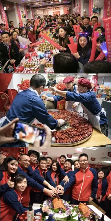 京东总部,毫无悬念的高朋满座、美酒佳肴齐飞,海鲜味儿、蛋糕香还有欢乐颂,充盈出欢乐的消费盛宴。依然是品牌商的祝福,京东团队默默奋斗。