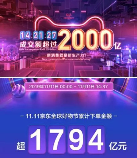 京东与天猫的双十一成交额对比