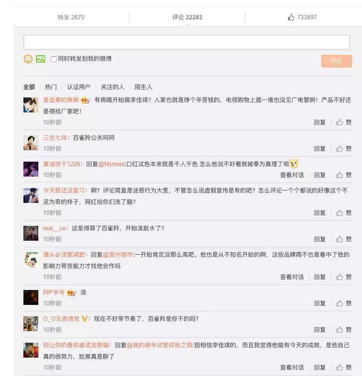 作为经常亲眼目睹明星乱七八糟新闻的吃瓜群众们,大家对买热搜、撤热搜、制造话题、发通稿等所谓的“公关动作”驾轻就熟,在如此巧合的情况之下,大家都一致认为:这是百雀羚公关干的,买了微博的热搜,来黑李佳琦,以实现反击。