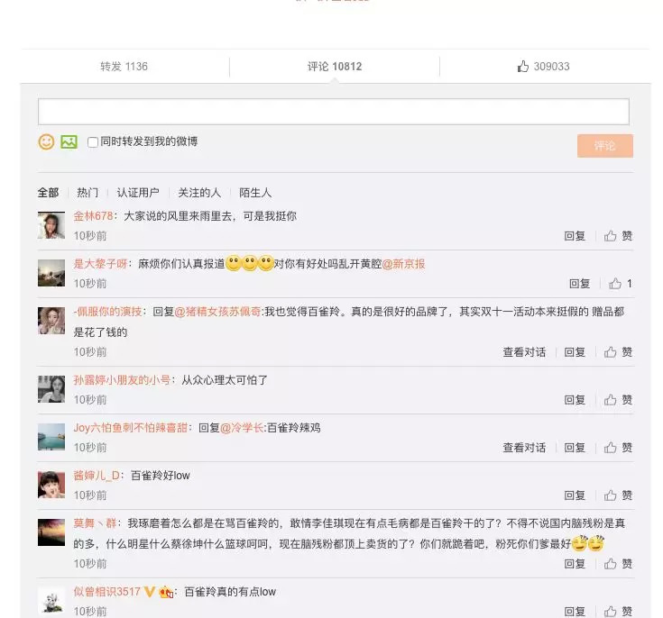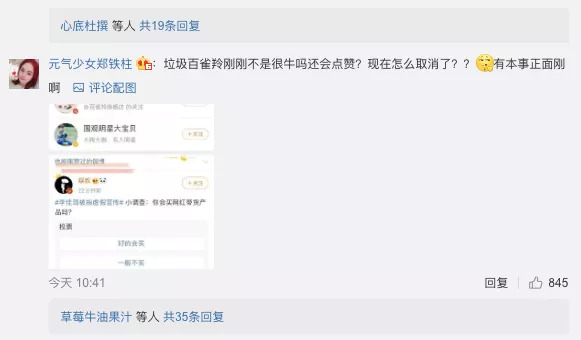 现在已不知真假,百雀羚旗下一个微博的点赞行为,又火上浇油。