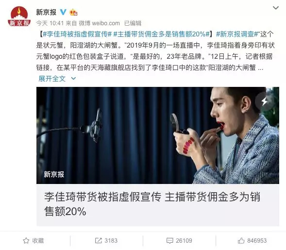 4、新京报为啥要“黑”李佳琦呢?