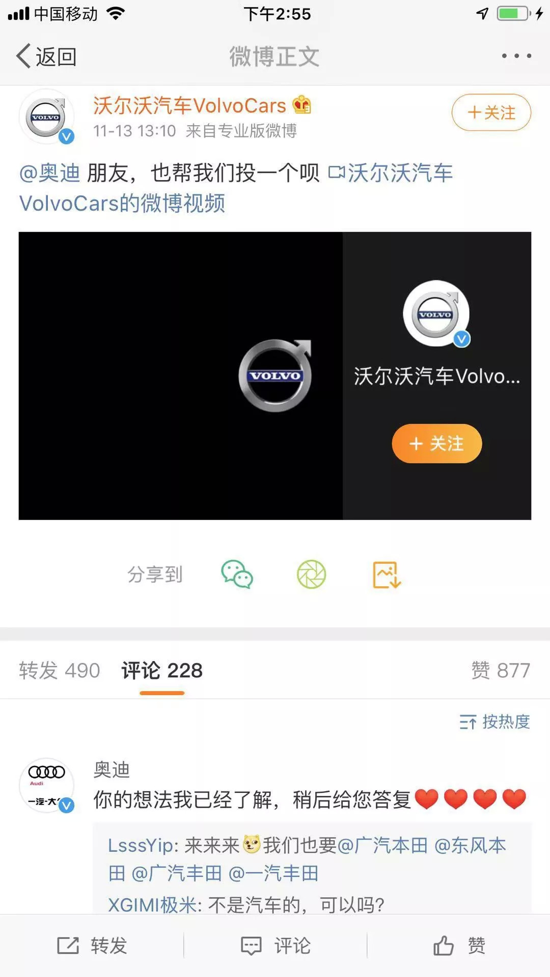 这就是大叔《刷屏》书里提到的“吐槽点”,其他车企的微博迅速跟进开玩笑,大家乐呵乐呵,一次事故变成了一次成功的营销。